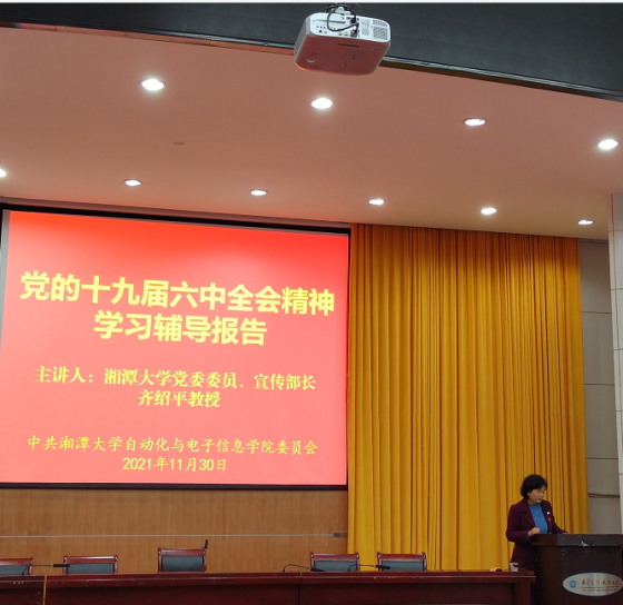 党委委员、宣传部长齐邵平教授主讲的党的十九届六中全会学习辅导报告《百年奋斗 再启新程》,齐部长从审议通过2个文件、马克思主义中国化的3次飞跃、百年历程创造的4个伟大成就、党的百年奋斗的5大历史意义及10大历史经验、党的十八大以来13方面的重要成就、全党4个必须、党中央的1个号召等全面展开,以史为鉴,开创未来。党和人民百年奋斗,书写了中华民族几千年历史上最恢宏的史诗。党的十九届六中全会主题重大、内涵丰富,是在“两个一百年”奋斗目标的历史交汇期,召开的一次具有里程碑意义的重要会议,彰显了中国共产党始终把为中国人民谋幸福、为中华民族谋复兴作为自己初心使命的政治本色。我们广大党员从党的百年奋斗重大成就中汲取动力滋养,从党的精神谱系中锤炼担当品格,要强化责任担当,抓住精神实质,以实际行动贯彻落实好十九届六中全会精神。