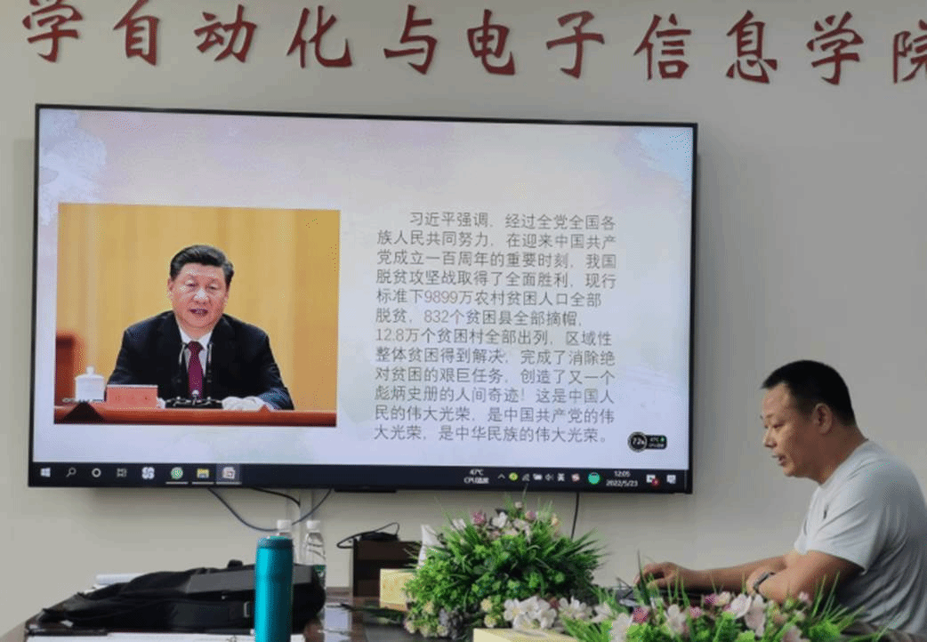 为例三个方面,以在张家坪村担任驻村干部参与扶贫攻坚的亲身经历,向大家详细解读了中国共产党的脱贫攻坚带领全国人民谋幸福的精神,了解伟大的脱贫攻坚战,深入了解学习习总书记关于“共同富裕”的精神内涵,深刻领会中国共产党人的使命与担当。