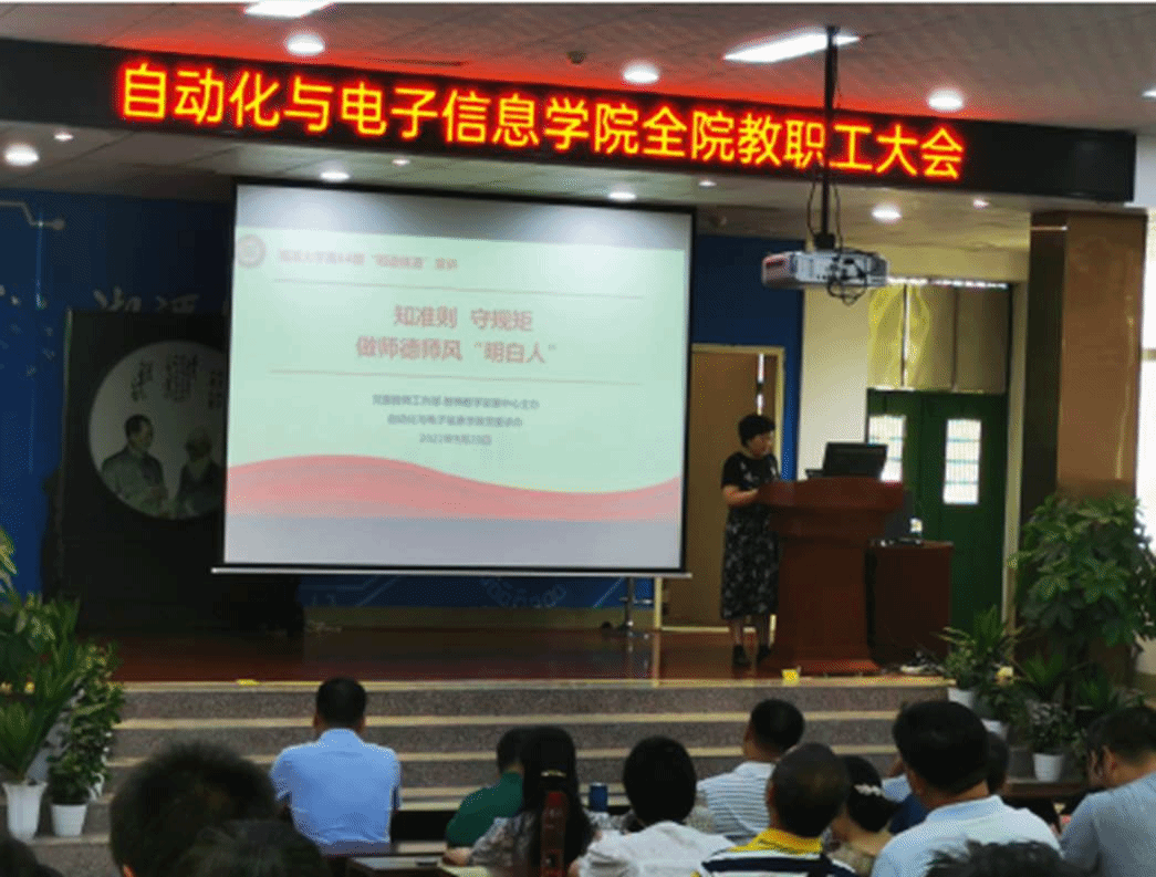 最后,金义华强调,作为传道者的教师,首先要明道、信道,要加强师德师风建设,坚持教书和育人相统一,自觉做有理想信念、有道德情操、有扎实学识、有仁爱之心的“四有”好老师