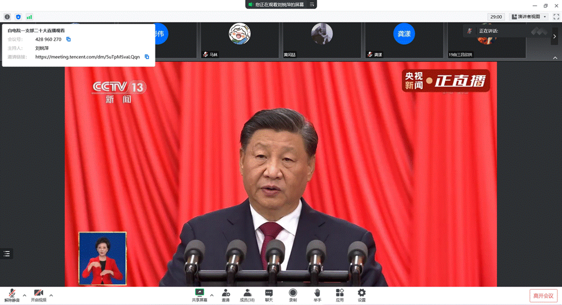 本科生第一党支部以“同心向党迎盛会,团结奋进新征程”为主题开展主题党日活动,组织全体党员线上观看学习了党的二十大开幕盛况。