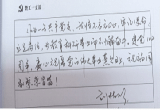 会议第一项,举行了支部颇有意义的主题党日活动,今年是建党102周年,支部党员为庆祝这伟大的节日,开启了“党啊,我想对您说”的留言活动。我支部党员刘桂珍在留言册上写下了这样一段话:作为一名共产党员,我将不忘初心、牢记使命,立足岗位,为教育科研事业而不懈奋斗。建党102周年,衷心祝愿党的伟大事业蒸蒸日上,祝福祖国繁荣昌盛!一支部还有其他过政治生日的党员也纷纷在留言册上,留下了对党的深深祝福。所有党员在自己政治生日的当月都会在此留言册上留言。