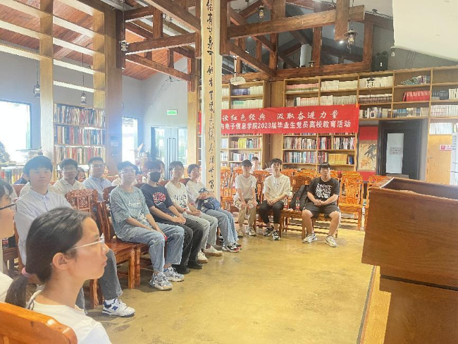 (通讯员 蒋昱梅)为有序推进学习贯彻习近平新时代中国特色社会主义思想主题教育走深落实,进一步加强毕业生党员的党性教育,使毕业生党员在离校之际,能够牢牢把握“学思想、强党性、重实践、建新功”的总要求,坚定理想信念,勇担时代使命。5月30日,自动化与电子信息学学院组织毕业生党员前往湘潭市旋梯书苑开展“诵读红色经典,汲取奋进力量”红色诗词宣讲活动暨离校教育活动。