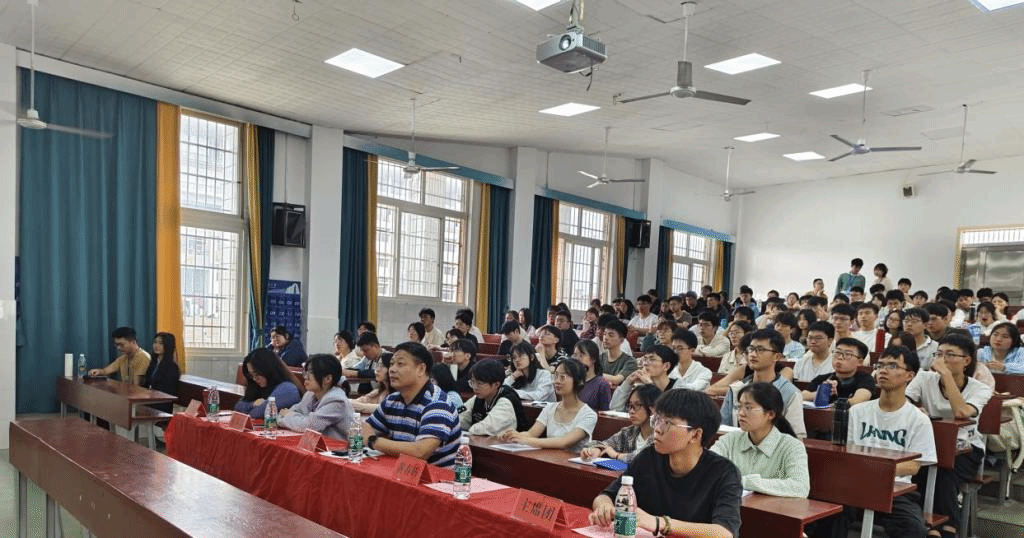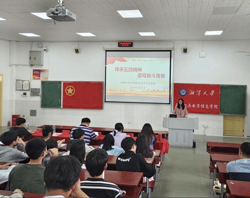 在南山六阶梯教室举行第九期团校开学典礼暨第一次团课培训,本次团课主题为“‘五四’精神传薪火,激扬青春献光彩——弘扬五四精神,创造青春辉煌”,共130余名学生参加。