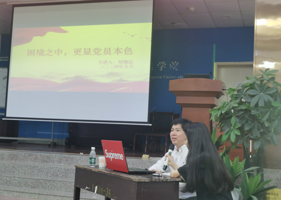 出版社副社长刘期达为全体毕业生党员主讲了一堂题为“困境之中,更显党员本色“的励志党课。