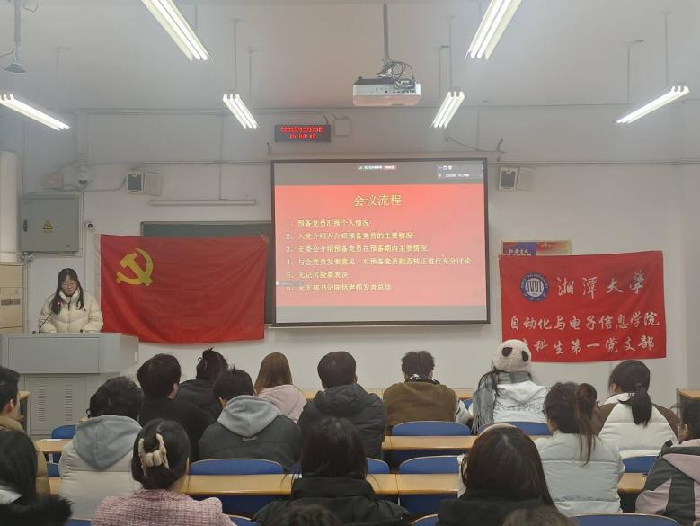 本科生第一党支部在兴教楼C103教室召开转正大会,支部全体党员参加本次会议。