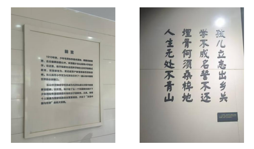 当日下午,师生党员走进毛泽东同志曾就读的东山书院。在毛泽东与东山学校陈列馆,党员们了解了书院的办学历史和少年毛泽东在东山学堂的求学历程,这座百年学府,以“公诚勤俭”为校训,培养了无数仁人志士。少年毛泽东在此求学期间,开始接受自然科学与社会科学的新式教育。在这里,他开始了从一个充满抱负的乡下少年到壮怀激烈的青年知识分子的转变。同样,师生党员们也在这里领悟着“孩儿立志出乡关,学不成名誓不还”的壮志豪情,深入了解了“一粥一饭当思来处不易,乌有士不啖菜根而能辨天下事者哉”的实际内涵。勤于学,工于技,善求实,为革命,担民事,接天下任。师生党员们深刻明白了习近平总书记所说的“让红色基因代代相传”的使命任务与时代意义。