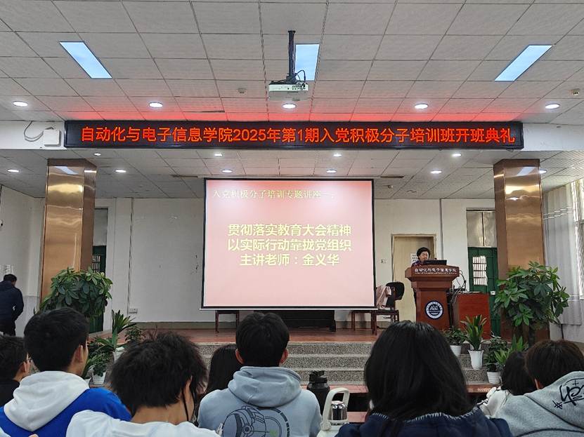 开班典礼结束后,即刻开展了第一次主题讲座《贯彻落实教育大会精神以实际行动靠拢党组织》,由金义华书记主讲。