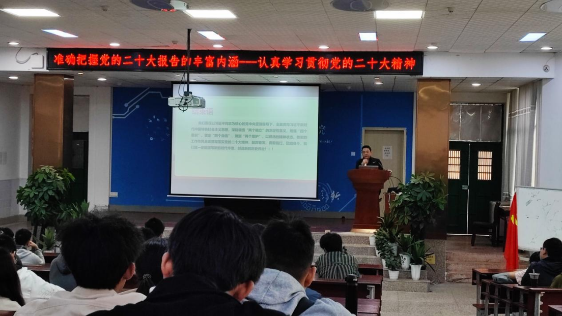 讲座主题为“准确把握党的二十大报告丰富内涵——认真学习宣传贯彻党的二十大精神”,由计网院党委书记蒋科兵进行授课。