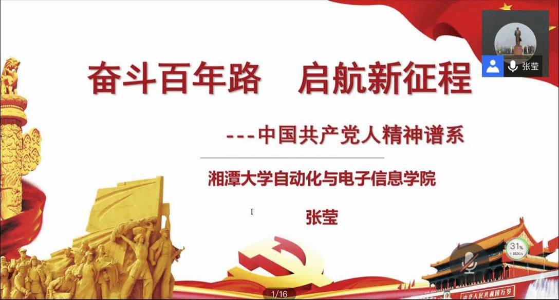 张莹老师从“中国共产党人精神谱系”引入,主要从奋斗百年、建党精神、中国共产党的精神谱系、红船精神、井冈山精神、长征精神、延安精神七个方面讲述了主题内容。张老师首先带领大家回顾党的百年奋斗历程,介绍了党的伟大成就。然后通过图文讲述的方式向全体学员深刻诠释了中国共产党人的精神谱系,鼓励当代青年向老一辈革命家和共产党人学习,坚定理想信念,艰苦奋斗,敢于奉献,勇于开拓创新。在提到共产党人的初心使命时,张老师表示:“入党誓词并不多,记住并不难,难的是终身坚守。”