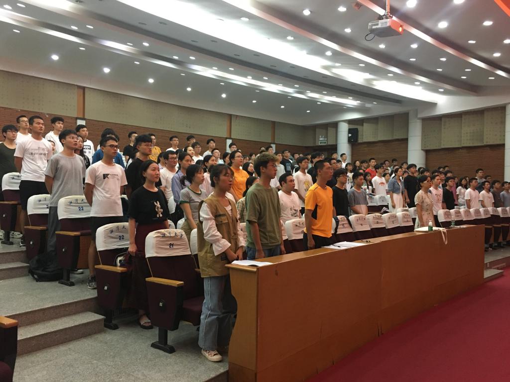 开班典礼伊始,全体师生起立,奏唱国际歌。