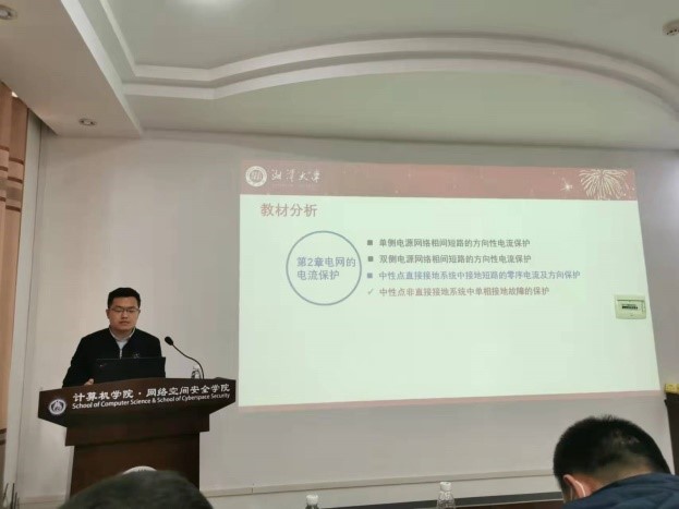 金义华书记为本次活动致辞,勉励老师们坚持发挥教师课程育人主体作用,不断推动课程思政教学改革,增强职业使命感和荣誉感,并特别欣慰老师们积极参与这样有意义的教研活动。为规范基层组织教研活动,学院和系部精心筹备、广泛宣传,为本次活动营造了良好的氛围。今年总计有4名老师报名参赛,参赛老师依次展示了精心准备的现场说课展示和PPT课件。学院党委领导和教指委专家认真听取了参赛老师讲课,并就讲课内容、思政元素、讲课技巧等方面提出了建设性意见。