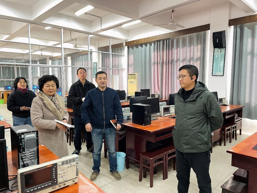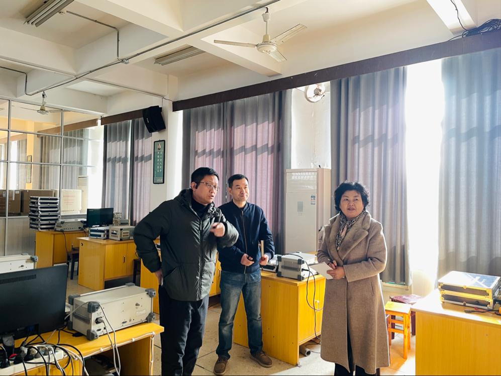 金义华书记一行依次走访了多个本科教学实验室,详细查看了实验室的设备设施运行情况、环境卫生状况以及安全防护措施落实情况等。在检查过程中,对部分实验室设备维护良好、摆放整齐有序、安全制度执行到位等方面给予了肯定,同时也针对个别实验室存在的问题提出了整改要求。