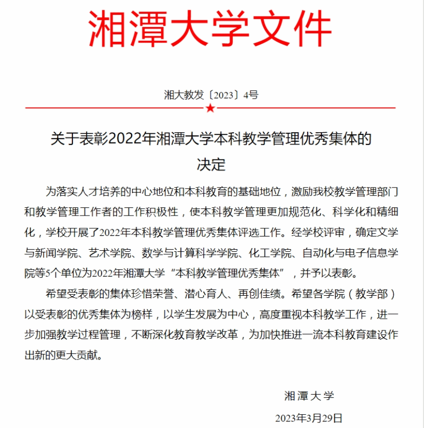 本科教学管理优秀集体的决定》(湘大教发〔2023〕4号),h韩漫