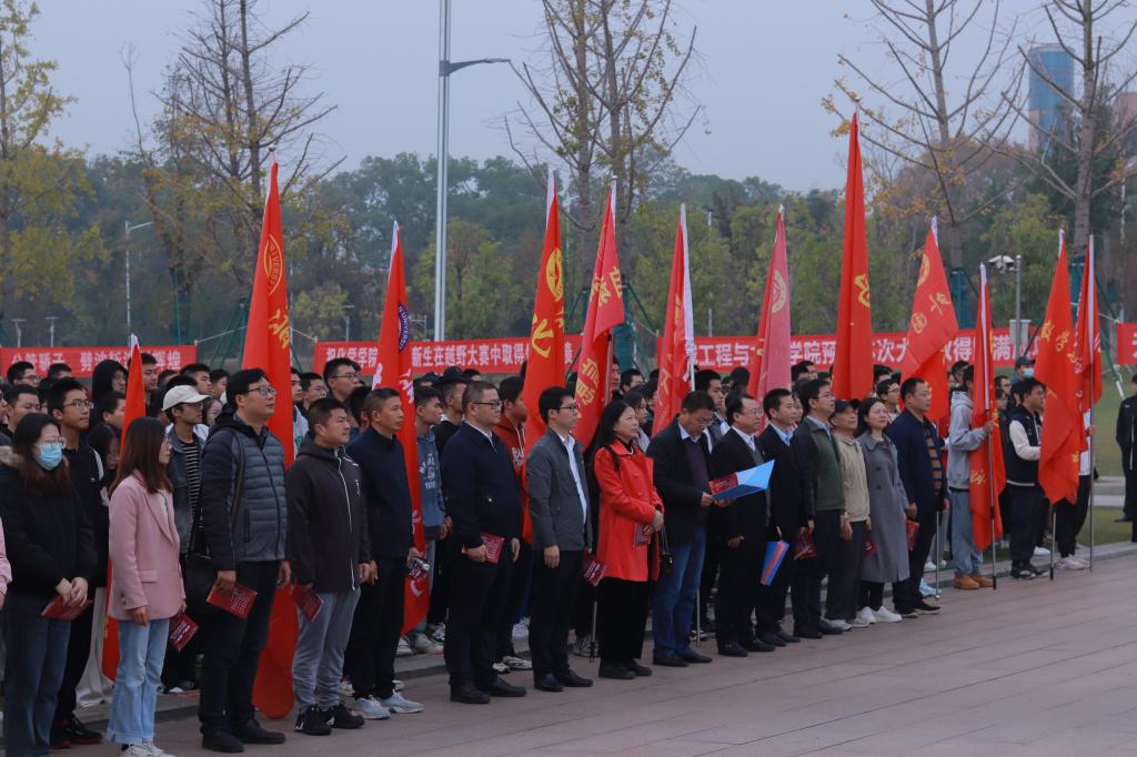 在铜像广场前举办“无限越野,测向未来”无线电测向越野大赛,来自20个学院的84支队伍、近400余人参加。副校长刘建平出席。
