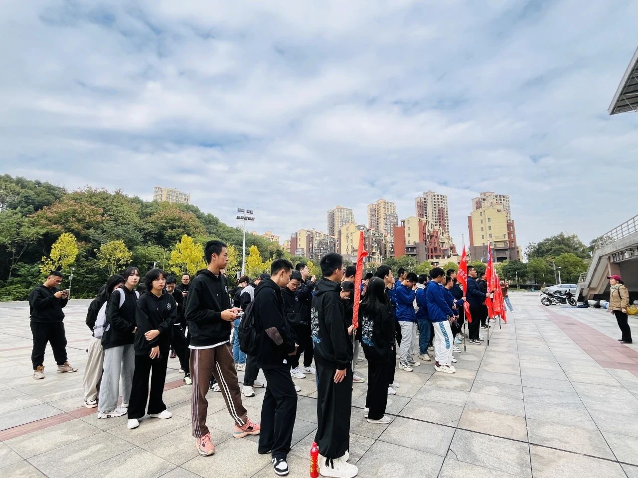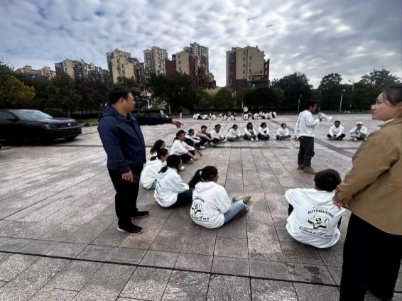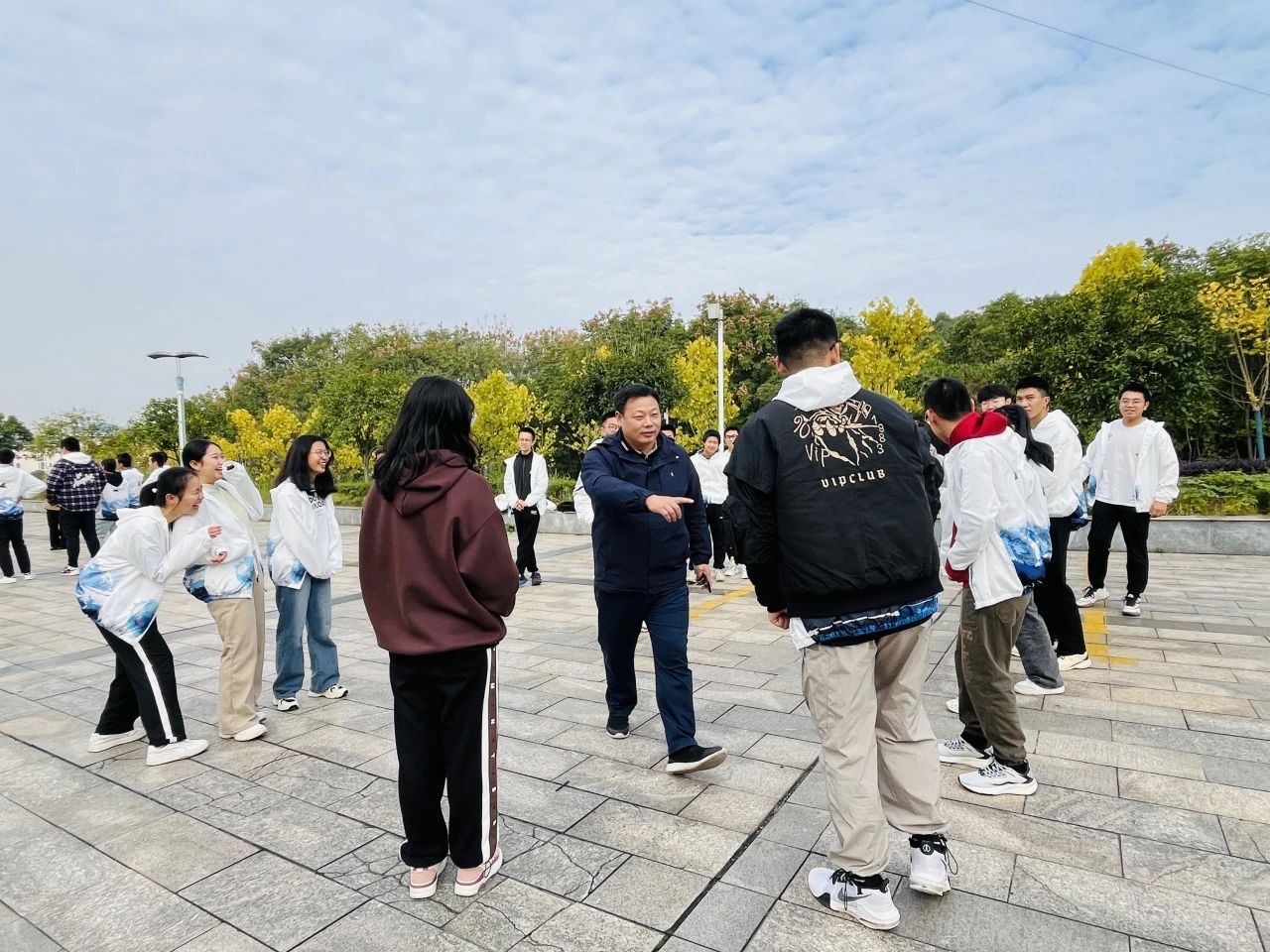 于新体育馆开展2023级新生素质拓展活动。学院党委副书记郭凤安,团委书记文林波,关工委副主任彭爱莲、学工办蒋昱梅、熊峰参与活动。