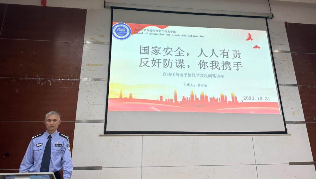 开展了《反间谍法》宣讲活动。“全国先进工作者”“全国特级优秀人民警察”荣誉称号获得者晏卓钦警官作为主讲嘉宾,分享了他近40年亲身维护国家安全的经历,为学院师生带来了一场生动的反间谍教育课。