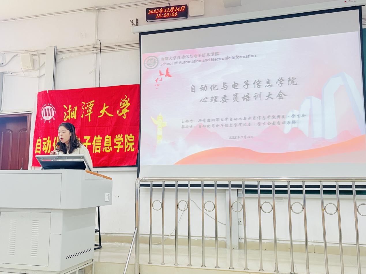 接着,蒋昱梅从心理委员的产生背景、心理委员的定位、心理委员的工作原则、心理咨询的基础技巧四个方面开展培训内容,在日常工作中要敏锐观察,记录本班同学的心理变化动态。遇到需要帮助的同学应遵循保密、尊重和主动的工作原则,及时与辅导员、学院心理教师和心理中心取得联系。并提醒心理委员们在助人同时要照顾好自己,做自己的温暖太阳,做班级的心灵使者。