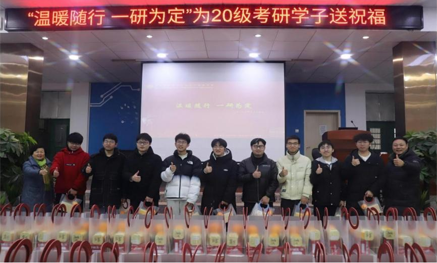 在工科楼阶梯教室开展“温暖随行 一研为定”考研祝福活动。学院党委书记金义华,党委副书记郭凤安,党委委员张莹,团委书记文林波及全体学工办老师参与活动。