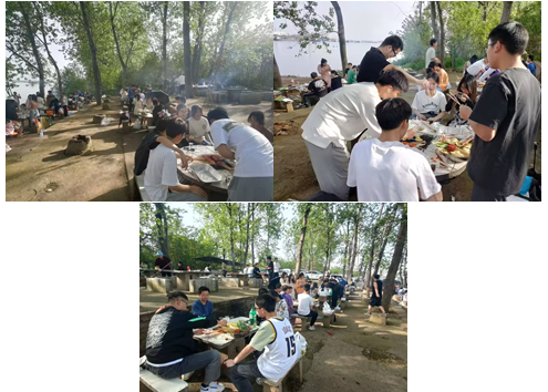 在烧烤活动现场,大家分工合作,烤得热火朝天,吃得不亦乐乎。欢声笑语连成片,其乐融融。谈笑间,大家忘却了烦恼,体验到了户外集体活动的乐趣。