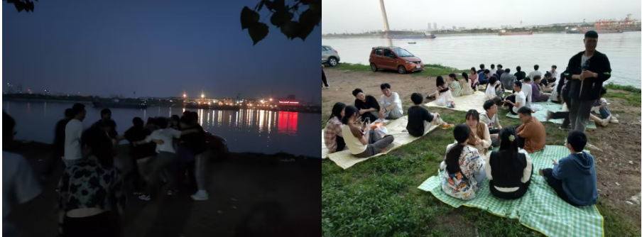 烧烤结束后,同学们在湘江边组织了游戏环节。通过各种富有趣味性的小游戏,如你画我猜、谁是卧底等,笑声在湘江岸边弥漫。