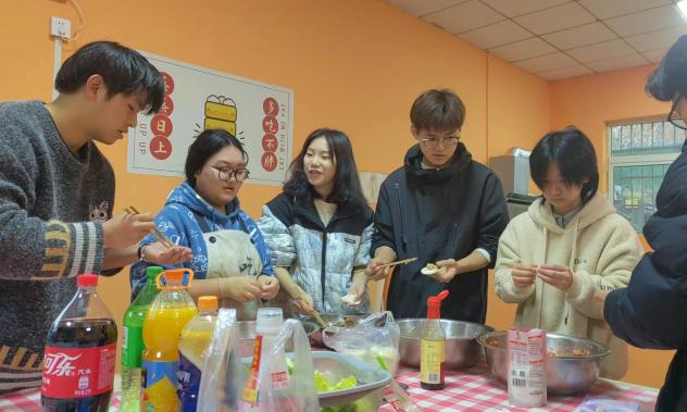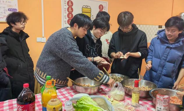 饺子包好后,大家来到餐厅,围坐在一起,共同享受火锅盛宴。丰富的食材摆满桌,热腾腾的火锅汤底散发着浓浓的诱人香气。这一刻,食物不仅满足了胃,更加深了同学们之间的感情。