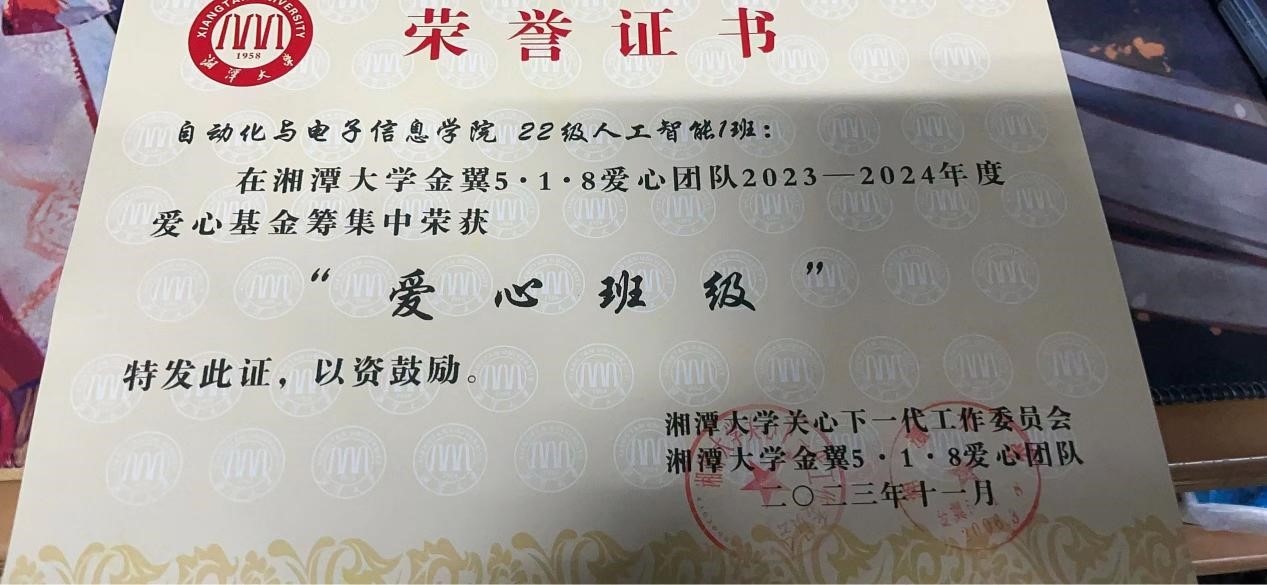 金翼5·1·8爱心团队于2023—2024年度爱心基金筹集活动中获得了“爱心班级”称号,这是本班在爱心事业中的又一次重要成就。