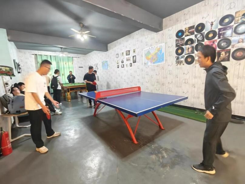 一走进大门,迎面而来的,就是一层的电玩和台球乓乒乓球。男同学直接就占领了这一方电玩小天地。隔壁,台球的击打也吸引了许多同学的目光,研究着这属于“简单物理”的碰撞。乒乒乓乓,小球飞舞,一击一回,大家都与自己初识的同学们融洽地聚在一起,这让人工智能1班这个大家庭获得了聚合的内在。