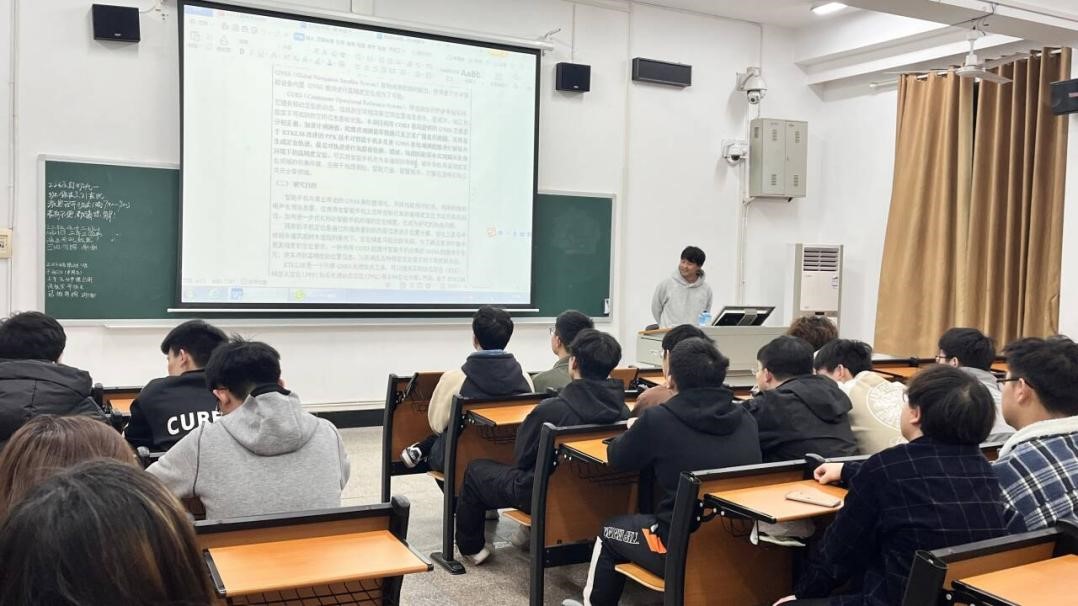 给大家分享经验的王康伟和陶晓宇同学在2022年暑假参加过全国大学生数学建模竞赛,并取得了省级一等奖的优异成绩。他们之后参加了“谷歌智能手机分米级定位挑战赛”,在比赛中调研国内外文献,进行方案论证,凝练创新点,申报了2024年创新项目“复杂情况下基于多CORS基站的智能手机高精度定位方法研究”。交流会上他们重点介绍了项目申报书的撰写过程,包括选题、找队友、找指导老师以及查阅文献等。这些经历激发了同学们对专业研究的兴趣。