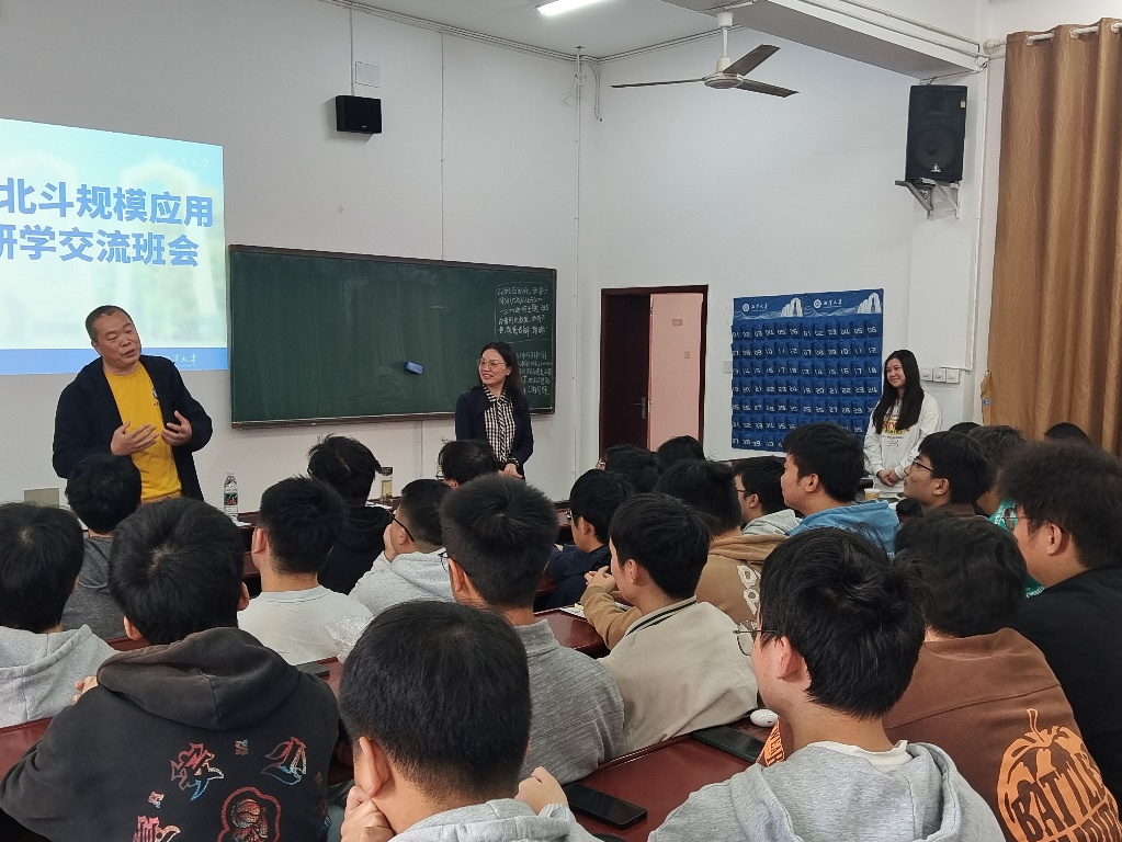 会上,首先由22级自动化1班的3位同学分享了此次研学交流活动的体验与感受。他们生动地讲述了此次的研学经历,都表示此次研学活动让他们深刻体会到北斗技术在国家重大战略部署中的关键作用,进一步坚定了投身科技事业的决心。