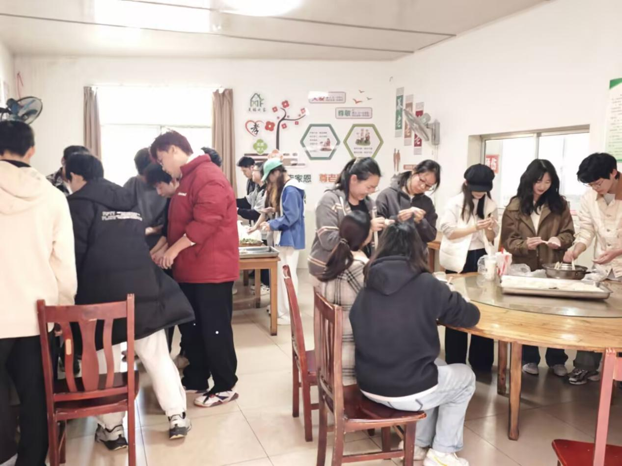 随后,包饺子活动正式拉开帷幕。厨房里,同学们自觉分组,分工明确,热火朝天地忙碌了起来,虽然手法略显生疏,但大家都干劲十足。那一个个形状各异的饺子,虽谈不上精致,却承载着满满的爱意与温暖。厨房里充满了欢声笑语,其乐融融。