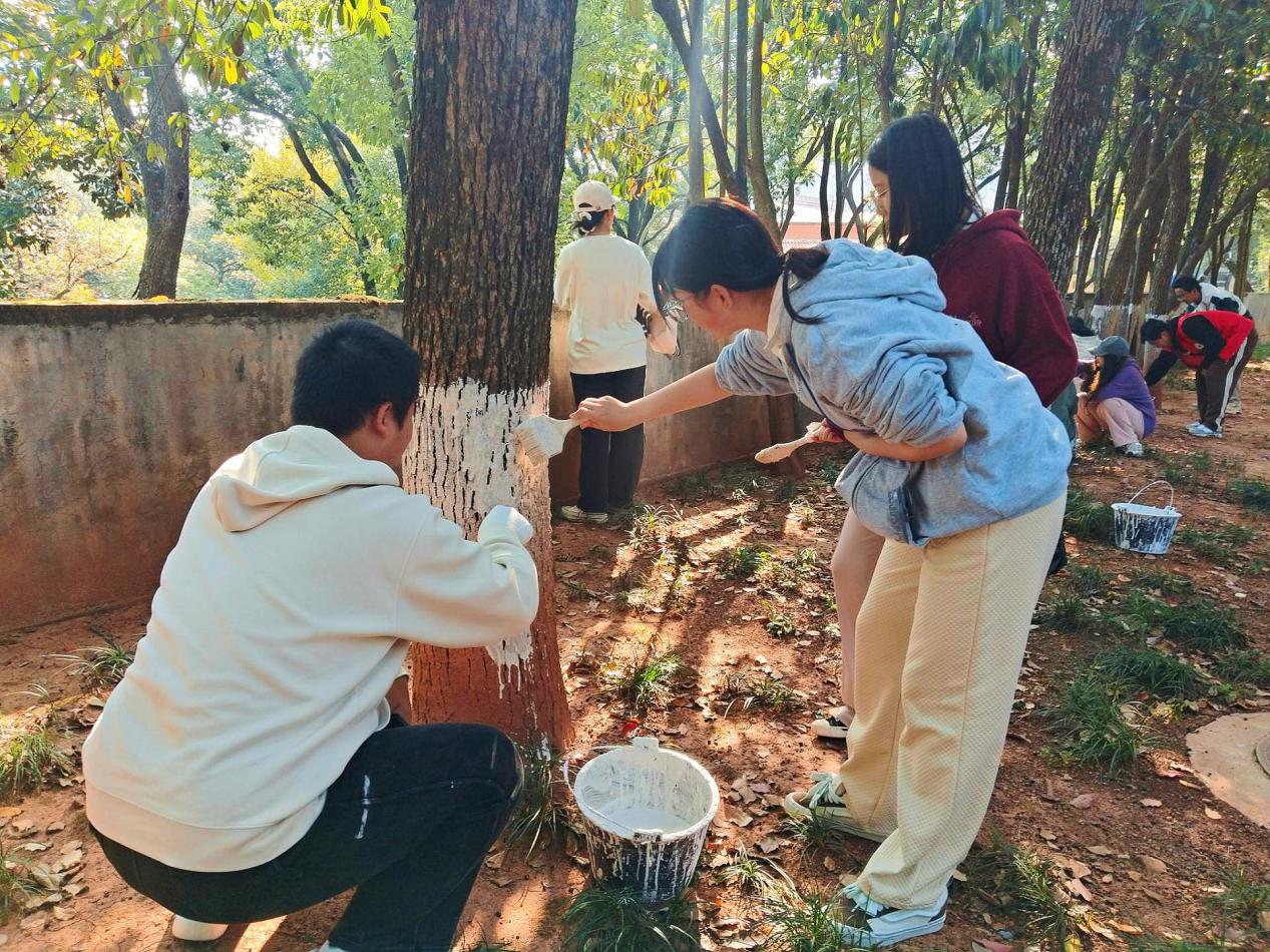 “刚开始觉得刷树很简单,实际操作才发现需要技巧和耐心,”参与同学计宇斌表示,“这次劳动让我体会到园林工人的不易,也真切感受到为校园做贡献的成就感。”经过两个小时的辛勤劳动,主干道两侧的树木整齐划一地披上了白色防护层,成为冬日校园里一道亮丽的风景线。
