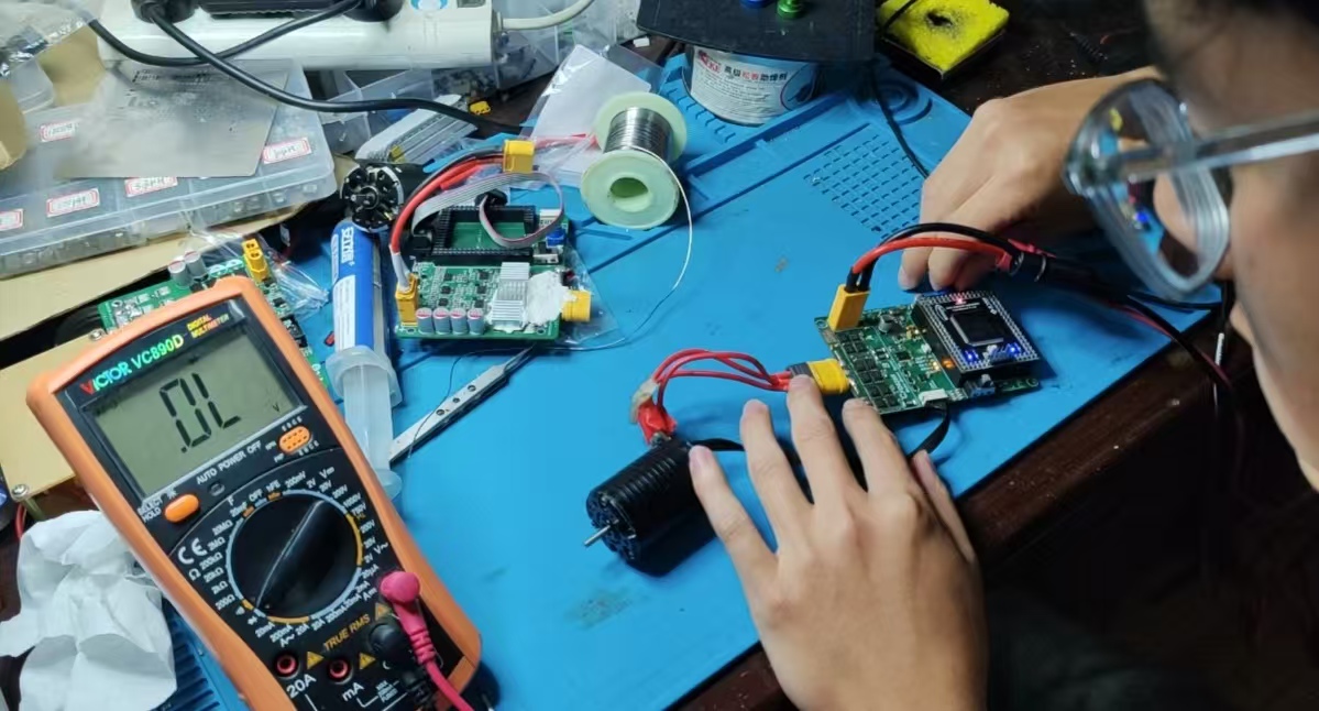 智能车备赛团队以 “攻坚模式” 推进,从零件选型、车架组装到代码编写全程自主摸索。为优化赛车弯道通过性能,团队连续4周每日开展30余次实地测试,累计记录120余组数据,多次趴在地面观察车轮转向细节,即便电路板修改13版仍坚持精益求精。向礼丹、郭雪峰老师每日进驻实验室,针对传感器调试精度、电机控制稳定性等核心问题提供技术方案,帮助团队规避8项关键技术误区,最终在赛事中取得省级三等奖1项。