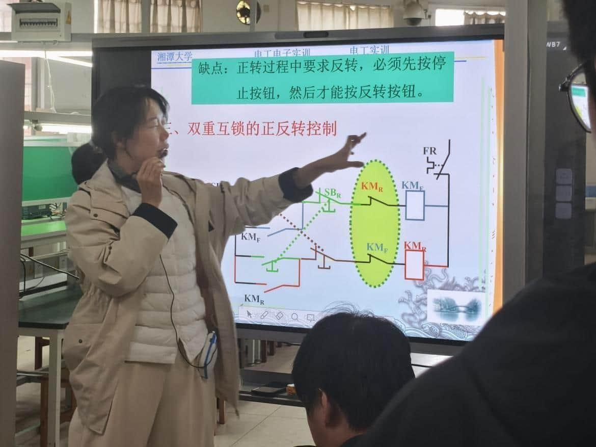 实验前,指导老师谭平安围绕电机正反转的电路原理、接触器互锁机制等核心知识点展开讲解,结合电路图详细拆解电源接线、开关控制、电机接线等关键步骤,并着重强调实验过程中的用电安全规范与仪器操作禁忌。随后,同学们以小组为单位分工协作,从核对元件型号、搭建控制电路,到调试接触器状态、测试电机转向,每一个环节都严谨细致、有条不紊。过程中,部分小组遇到电机转向异常、电路接触不良等问题,大家通过查阅资料、相互讨论、请教老师等方式逐一排查解决,实验室里始终洋溢着专注探索的浓厚氛围。当看到电机成功实现正反转切换时,各小组同学都露出了欣慰的笑容。