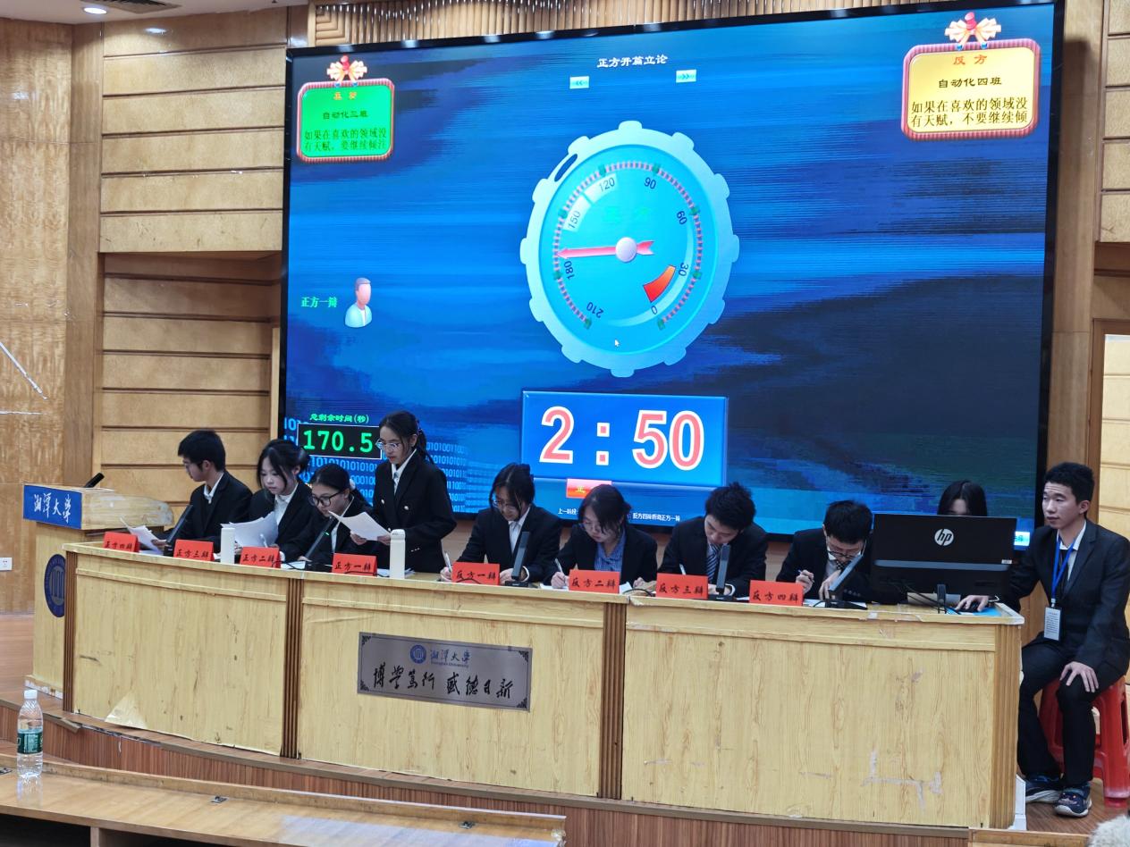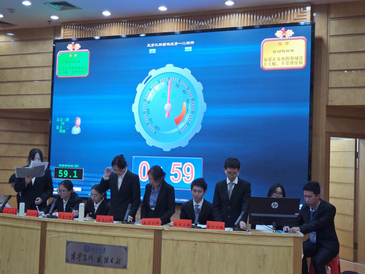 在驳论环节,赛场气氛逐渐推向高潮,自由辩论环节,辩论进入了白热化阶段。双方辩手反应敏捷、言辞犀利,自动化三班的辩手们更是凭借扎实的理论储备和默契的团队配合,紧扣论点层层剖析,多次抓住对方逻辑漏洞发起反击。