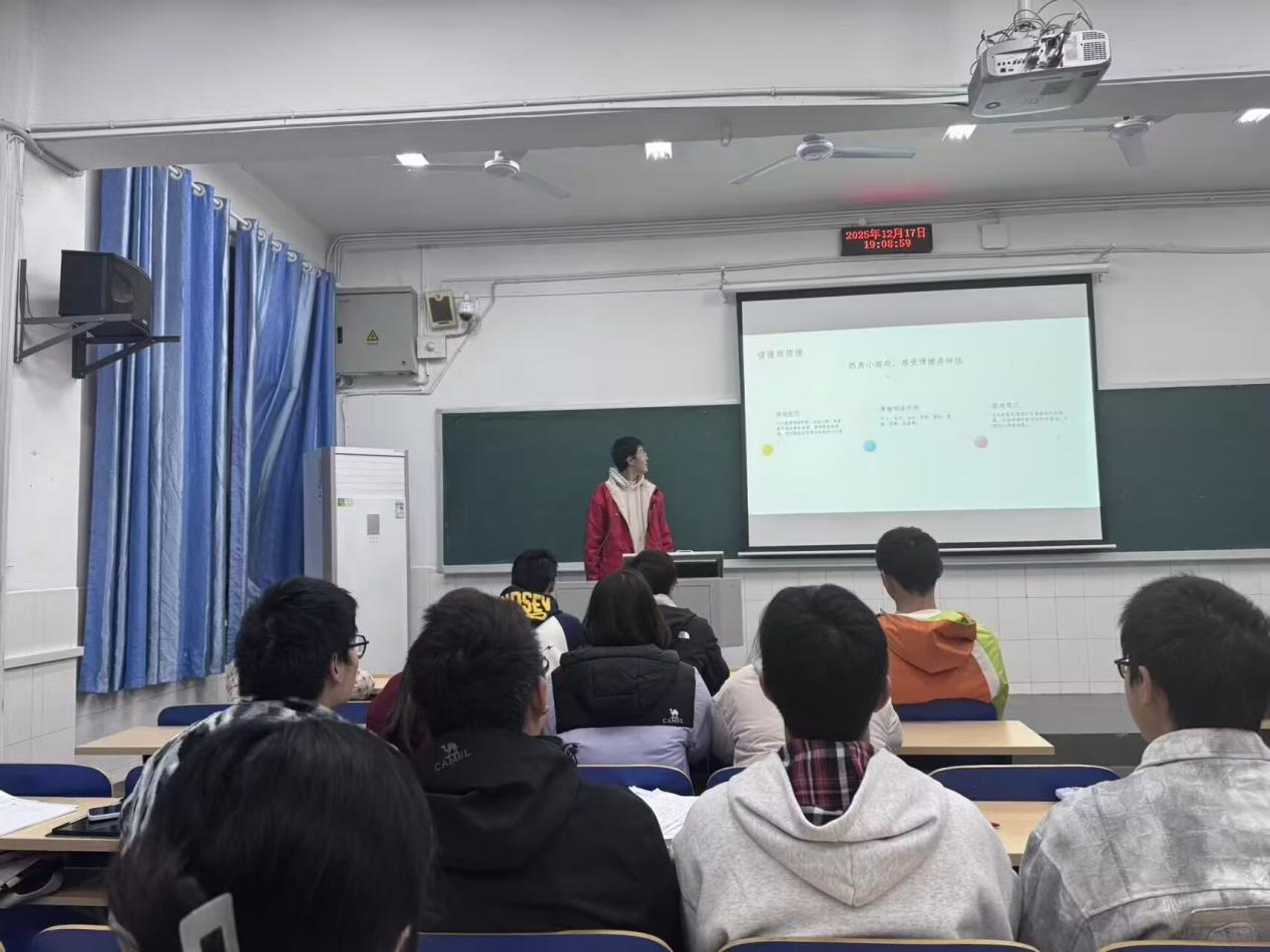 班会伊始,主持人以近期校园心理健康活动的背景引入,阐述了关注心理健康的紧迫性与日常性。他提到:“良好的心理状态是我们高效学习、快乐生活的基础,尤其在学业任务繁重的阶段,同学之间互相支持、主动调节尤为重要。”