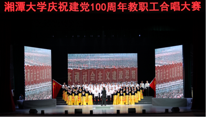 2021年6月18日晚,学校为庆祝建党100周年,在俱乐部举办了教职工合唱大赛。本次比赛的歌曲根据建党的历程分为:“开天辟地,救亡图存”、“改天换地,上下求索”、“翻天覆地,励精图治”、“惊天动地,走向复兴”四个篇章。