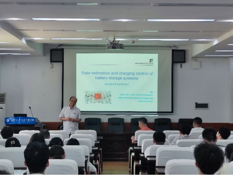 聘任仪式结束后,李慷教授在土木楼A217报告厅进行题为“Intelligent monitoring, state estimation and charging control of Li-ion batteries”的学术报告。