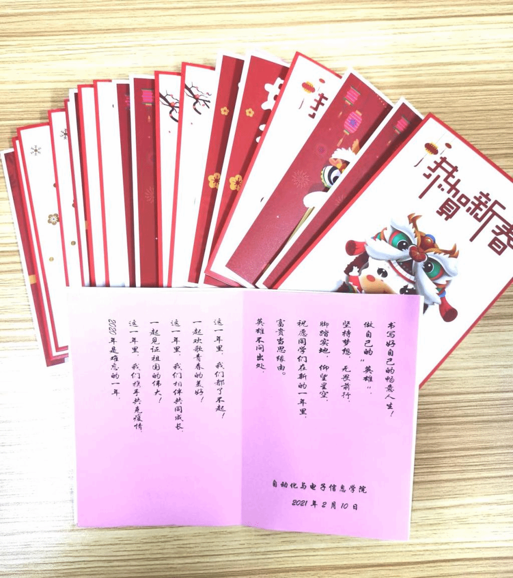 金书记贴心地问候了同学们的生活、学习情况,代表学院为大家送上了精心准备的小礼物“英雄”牌钢笔,勉励大家“坚持梦想,无畏前行,做自己的‘英雄’,书写好自己的畅意人生!”同时,金书记还叮嘱大家一定要注意安全,有什么困难要及时跟学院提出来,要跟家人保持密切联系,要严格遵守学校疫情防控的各项措施,充分利用春节假期加强学习,不断提升自我,度过一个充实而有营养的别样春节。