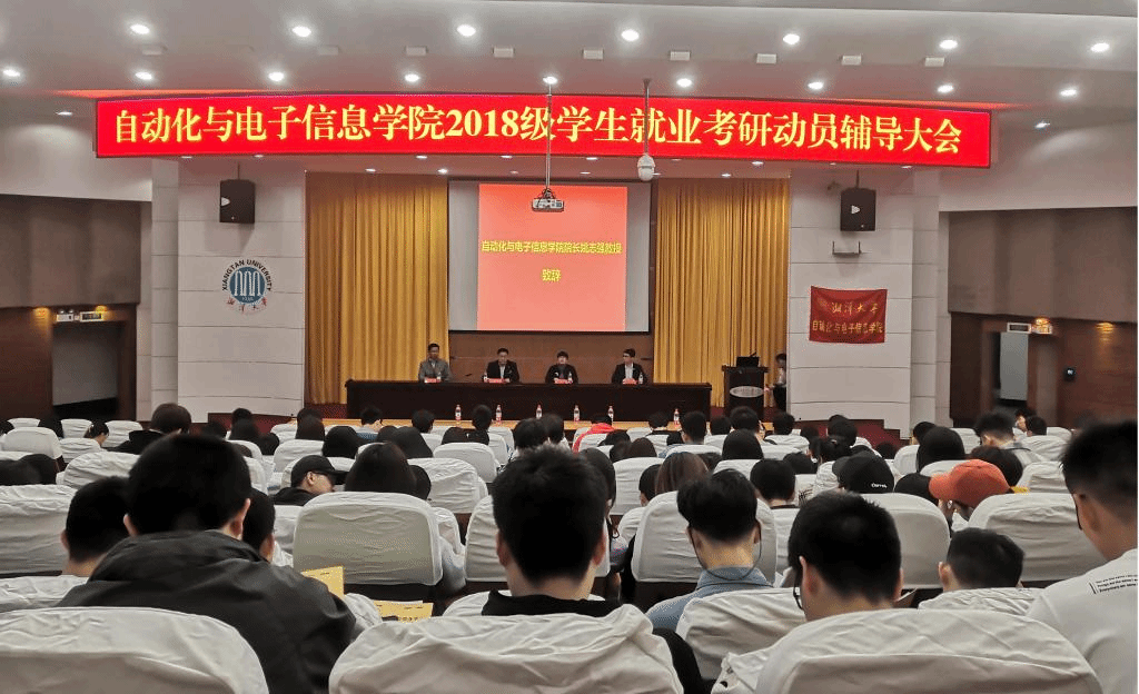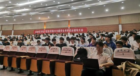 在逸夫楼一报告厅举行2018级学生就业考研动员辅导大会,以帮助同学们尽早树立明确的就业考研目标,了解形势,掌握政策。学校招生与就业指导处赵婵处长、h韩漫