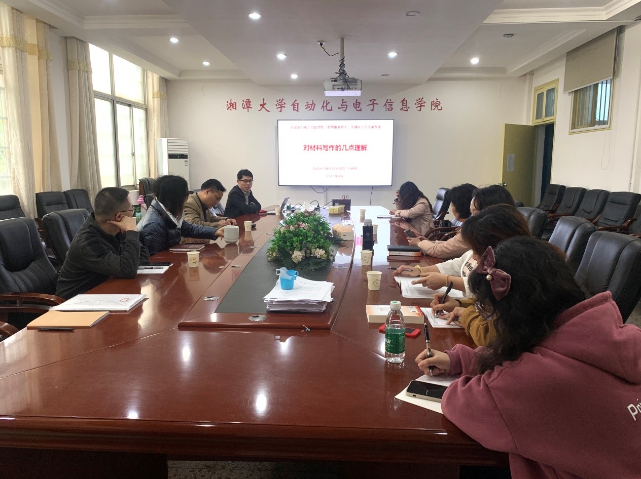 首先,孙明辉副书记为管理育人先锋队成员进行业务培训,培训的主题为对材料写作的几点理解。孙书记就材料写作阐述一下几个方面的内容:1.材料写作的性质,材料写作时部门管理工作的重要组成部分,是参谋决策单位事务的重要体现,是展示单位形象水平的重要窗口;2.做合格材料工作者需要具备的“三个基础四个不为”,即需要具备文笔基础、逻辑基础、事理基础,写作要不为辛苦所惧、不为心绪所乱、不为环境所扰和不为诱惑所动;3.材料写作“七讲”原则,讲政治高度、讲科学态度、讲文学要求、讲规范水平、讲工作方法、讲和谐文化、讲领导策略;4.应用文写作贵在有法,重在“双规”(遵循规律、遵照规范);5.会议纪要、工作总结、新闻写作的方法;6.如何提高材料写作的水平;7.共同学习了优秀材料写作的范例。