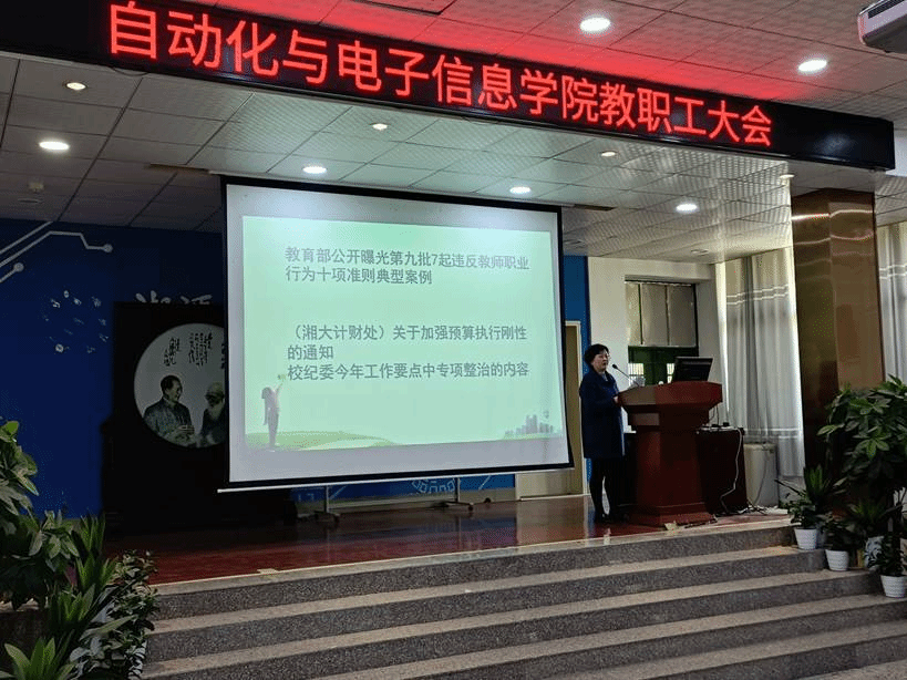 随后,金义华通报了教育部公开曝光的第九批7起违反教师职业行为十项准则典型案例,强调了师德师风建设的重要性、长期性及违反师德师风的个人处罚、领导的连带责任。解读了“(湘大计财处)关于加强预算执行刚性的通知”、校纪委今年工作要点中专项整治的内容。强调老师们要有节约意识、规矩意识,所有的开支必须事前有计划、预算,经审批同意方可实施行动,审批时严格按上级政策规定的标准,同时落实“花钱必问效、无效必问责”制度。严禁财务方面的一切造假行为!