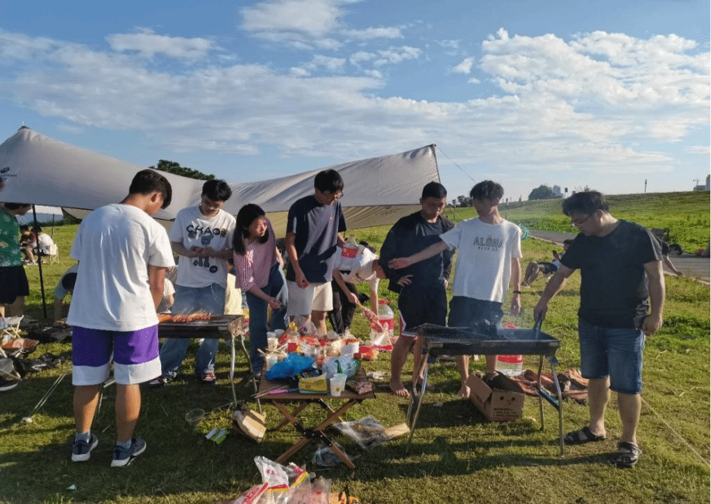 为了本次活动能够顺利进行,三班班委们几天前就开始积极规划活动方案、提前场地踩点、筹备以及购买物资,极为用心的策划了以夏日趣露营为主题,以烧烤、桌游、飞盘、风筝、飞行棋、唱歌等为内容的团建活动。