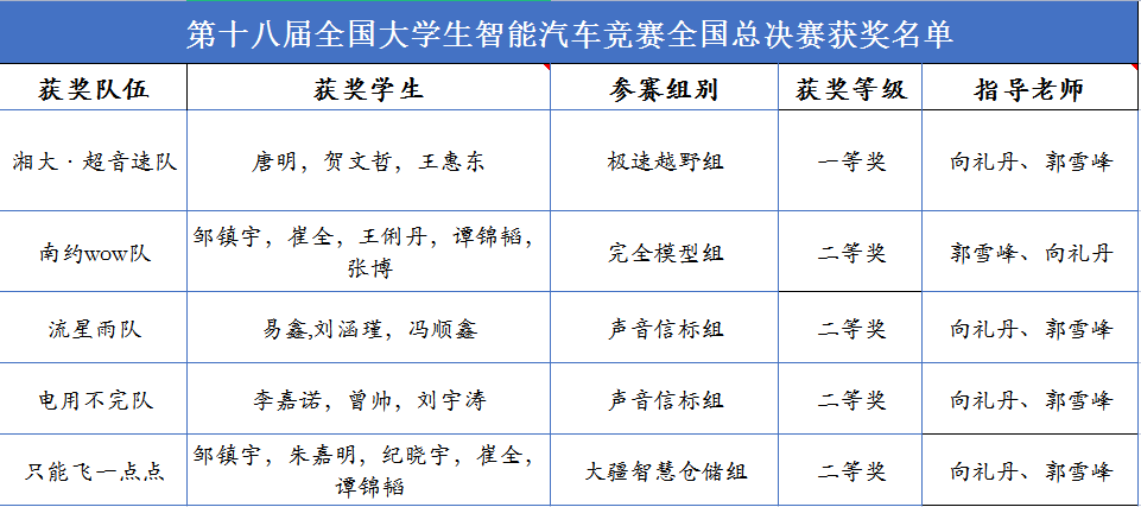 电工电子创新实验室智能汽车队伍获全国一等奖1项,二等奖4项。