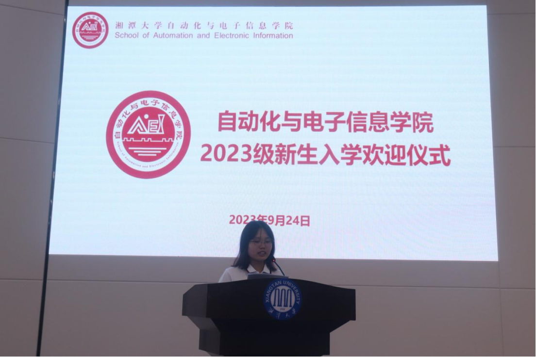 老生代表,研究生新生代表,本科新生代表分别发言,与新生共勉,谨记“博学笃行,盛德日新”的校训,弘扬“自立自强,守正创新”的自电精神,谨遵师长的教诲,在学习中充实自己的内心世界,在成长中塑造自己高耸的人格,能够“湘”遇更好的自己。