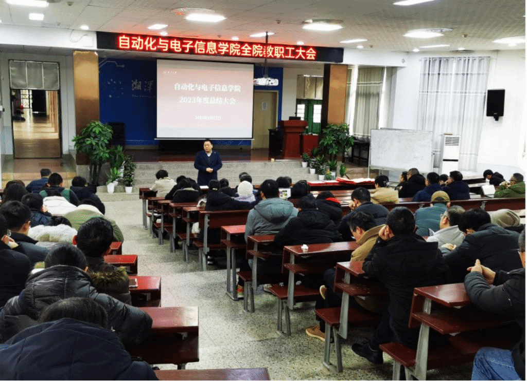 2023年终总结表彰大会在工科楼阶梯教室隆重举行,学院党政领导班子、全体教职工参加了会议。