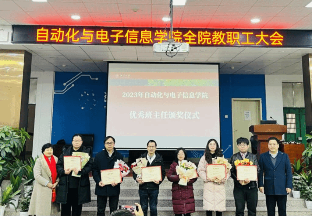 院长姚志强、党委书记金义华代表学院领导班子,为四个系新上任的系主任、副主任颁发聘书,为在2023年度工作中取得优异成绩的优秀个人、校级优秀班主任、院级优秀班主任颁奖并表示祝贺。