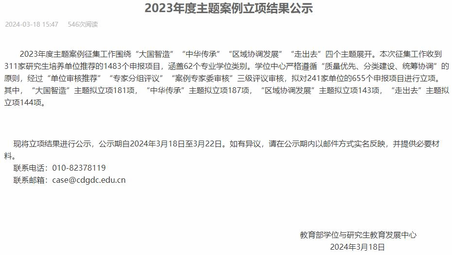 3月18日,中国专业学位案例中心公布了2023年度主题案例立项结果,经过“单位审核推荐”“专家分组评议”“案例专家委审核”三级评议审核,共对241家单位的655个申报项目进行立项。其中,h韩漫