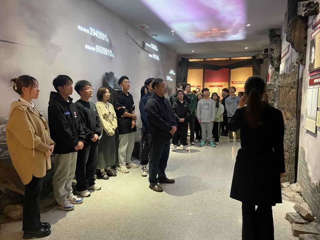 在湘潭烈士事迹陈列馆,师生们跟随讲解员的步伐,参观了陈列馆里的英烈事迹展和全民国防教育专题展两个展厅。在英烈事迹展厅中,随着讲解员的述说,通过观看现场的历史照片、实物、影像、艺术场景等,学习了湘潭英烈的伟大事迹,感受到了英烈们灼热的信仰信念、炽烈的家国情怀,以及他们奋勇拼搏、不惧牺牲的精神品质。在全民国防教育专题展中,通过自由参观,了解了人民军队的光辉历程、国防和军队建设取得的伟大成就以及在国防和军队建设中湘潭的贡献与担当,深刻明白了“强国必须强军,军强才能国安”的道理。