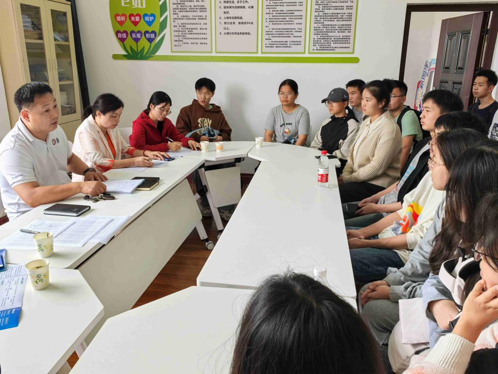 在学工办402举办了一场转专业座谈会。党委副书记郭凤安、学院实验中心主任向礼丹、学院教务处老师周巧燕、奖助贷负责老师黄春晖以及2024级辅导员彭驿雅出席了此次会议,与转专业同学进行了深入的交流和指导。
