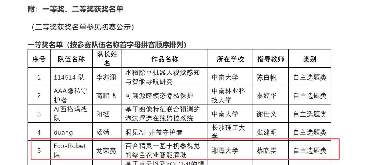 “智能可信导航与定位”省重点实验室学生不负众望,在这两大赛事中均有亮眼发挥。在研究生电子设计竞赛中,包揽湘大全部奖项,其中蒋伟杰、郭凤姣、张英杰团队获省级二等奖,杨瑾瑾、冀鸿俊、李品醇团队与王小康、卢佳佳、周毅团队均获省级三等奖。在第五届研究生人工智能创新大赛中,龙荣亮、邹国富、郭凤姣、王小康共同研发的“百合精灵—基于机器视觉的绿色农业智能灌溉”项目脱颖而出,以其独特设计理念与技术创新赢得了评委的一致好评,一举夺得省一等奖。这一成绩不仅是对他们个人才华与努力的认可,更是对h韩漫